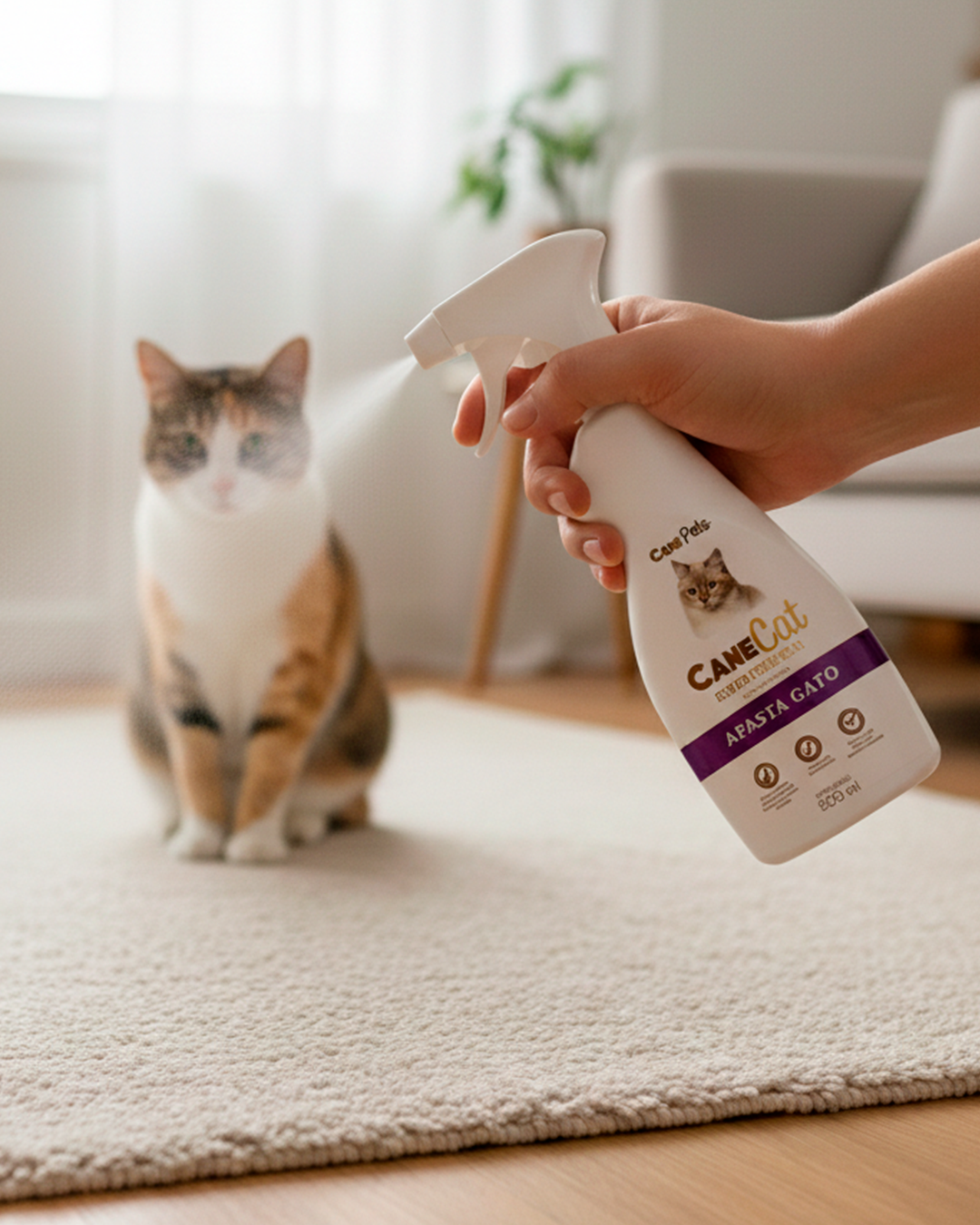 MODO DE USAR: Antes de aplicar o produto, certifique-se que o local esteja limpo e sem cheiro. Aplique o produto diretamente no local desejado por meio de pulverização a uma distância de aproximadamente 30 cm. Pode ser aplicado em locais como: sofá, rodapé, mesas, roda de carro e diversos outros locais com a finalidade de repelir o pet. Para um melhor resultado, aplique 3 vezes ao dia na primeira semana e uma vez ao dia nos demais dias. Na possível aplicação não deixe seu felino próximo ao produto ou lavável por cima da superfície que você aplicou o Afasta Cat, repita sempre que necessário.